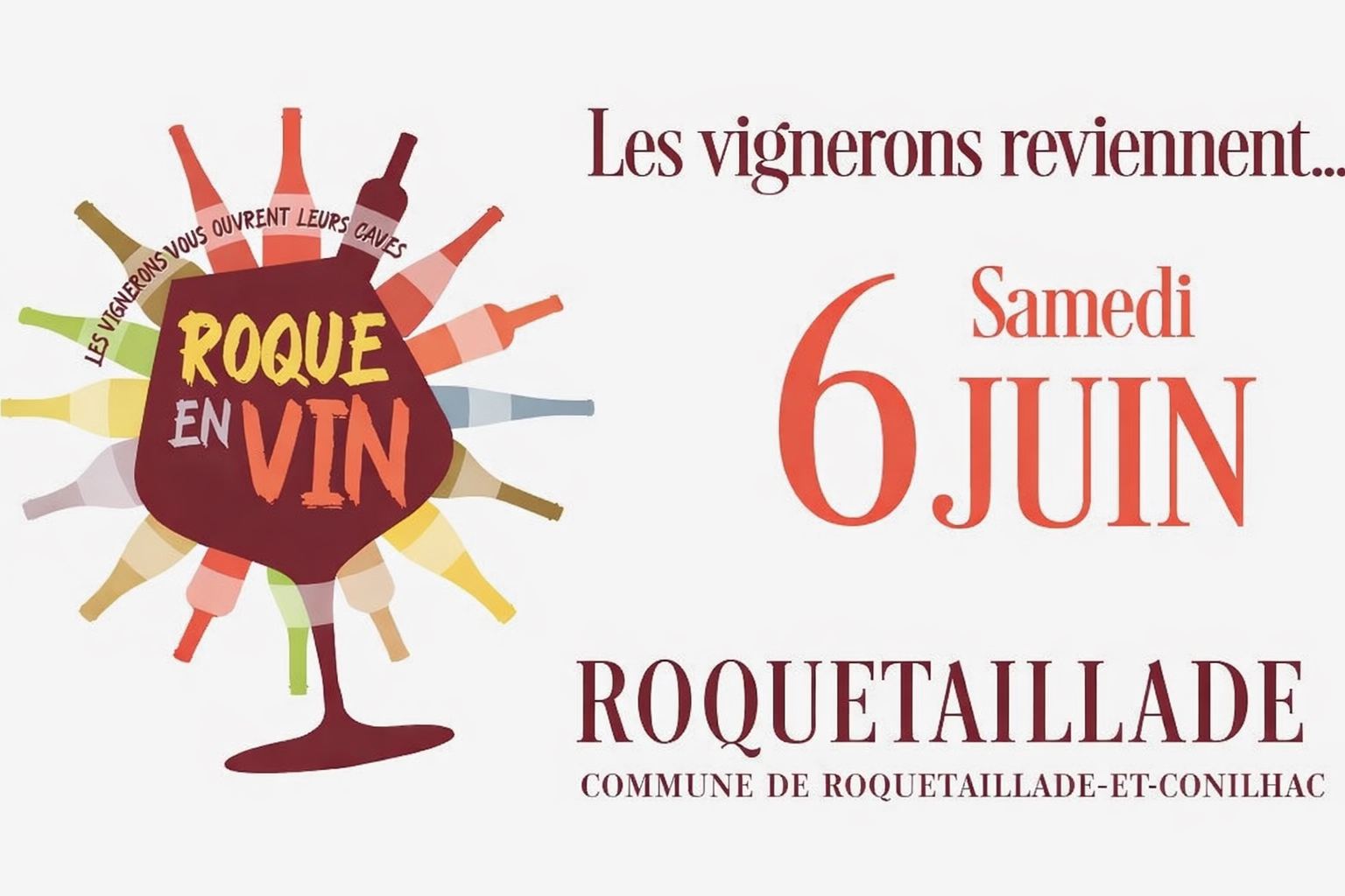 Roque en vin 6 juin / 17h00 - 23h30 ROQUETAILLADE Roque en vin De 17h00 à 20h00 : les vignerons du village vous ouvrent leurs caves pour des dégustations et